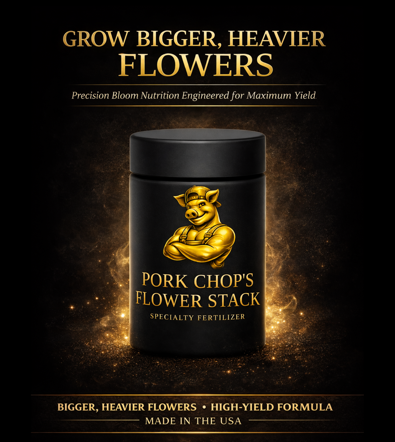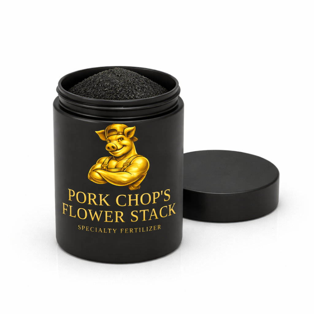 Pork Chop's Flower Stack™ is an ultra-fine, water-soluble bloom-stage specialty fertilizer engineered to support aggressive flower development, harder stacking, and heavier finishing during peak bloom.